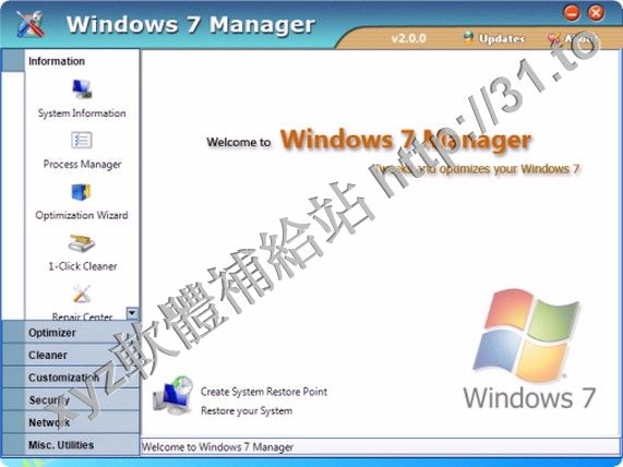 • Yamicsoft Windows 7 Manager v3.0.9.0 英文正式版(Widnows7 總管是優化和設置軟體)