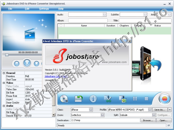 • Joboshare DVD to iPhone Converter v3.0.1.0113 英文正式版(音視頻轉換軟體)