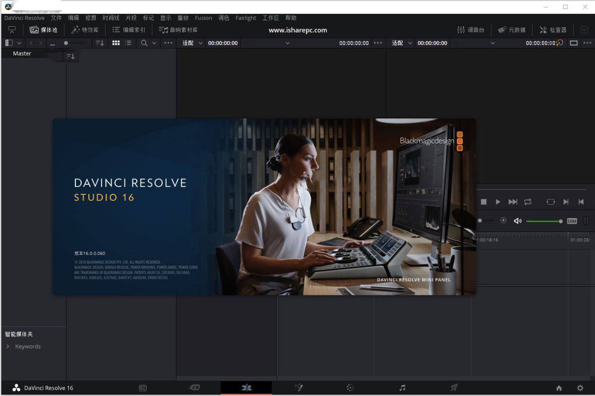 • Blackmagic Design DaVinci Resolve Studio 16.2 剪輯、調色、音頻後期和視覺特效 英文/簡體中文版(DVD版)